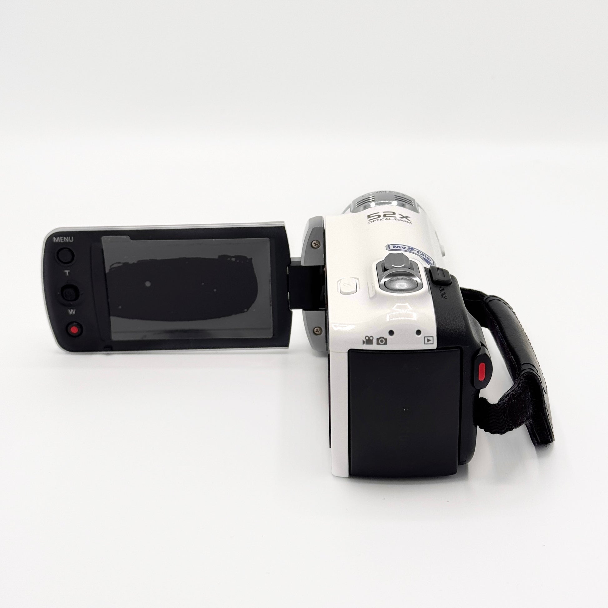 The Samsung HMX-F90 is a compact, powerful vintage camcorder with an insane 52× zoom, gorgeous soft video tones, and simple usability. It’s perfect for creators who love that retro home-movie aesthetic while still getting crisp, bright footage. Lightweight, reliable, and very fun to use.